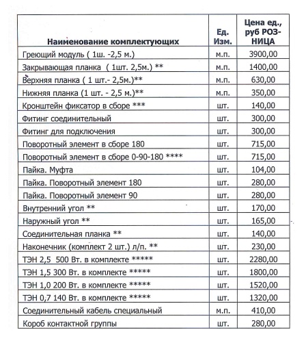 Будьте внимательны, пожалуйста - стоимость греющего модуля и всех планок указана за 1 погонный метр!